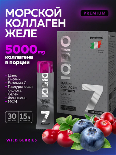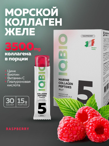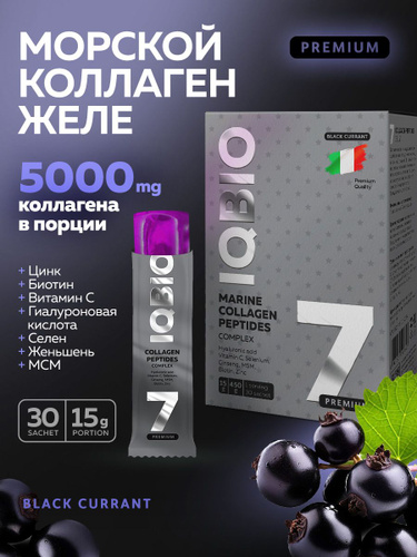 Морской коллаген в желе IQBIO, вкус Черная смородина, биотин, цинк и витамин С, рыбий коллаген для суставов, кожи, волос и ногтей, 30 саше. Marine collagen jelly.