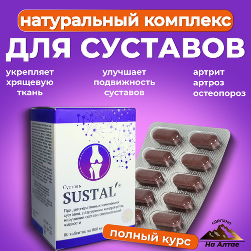 Сусталь таблетки для суставов Сашера-Мед от боли, артрита, артроза, остеопороза, 60 шт