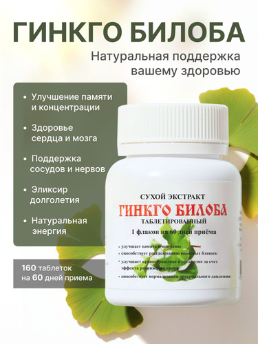 ГИНКГО БИЛОБА 160 таблеток, 50г (сухой экстракт листьев гинко билоба таблетированный, для мозга, памяти, концентрации внимания) / Мелмур