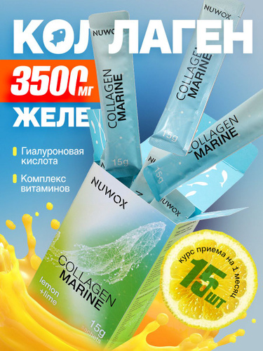 NUWOX Collagen jelly / Морской рыбий коллаген желе с витаминами и гиалуроновой кислотой для суставов, связок, кожи, волос, вкус лимон-лайм, 15 саше