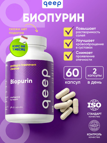 Комплексная пищевая добавка "Биопурин", от подагры для суставов qeep 60 капсул