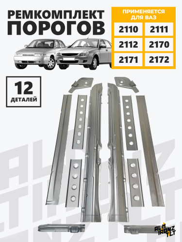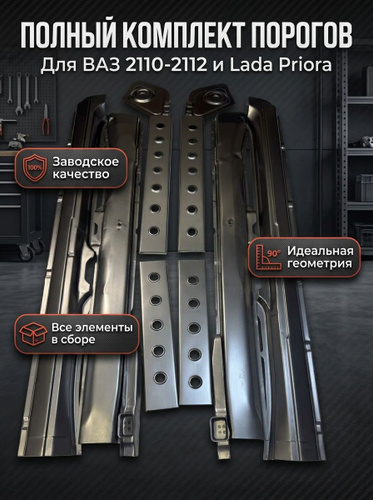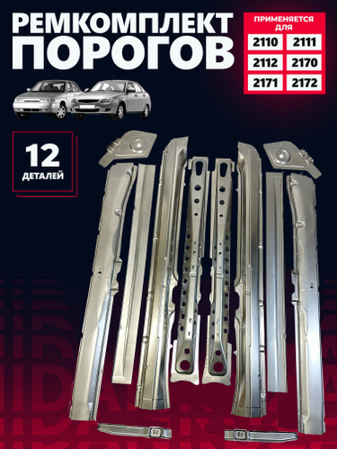 Ремкомплект порогов 2110, 2111, 2112, 2170 - 2172 (пороги внутренние и наружные + усилители + соединители + поддомкратники)