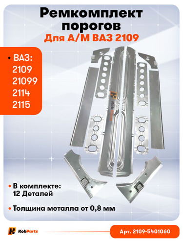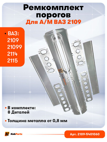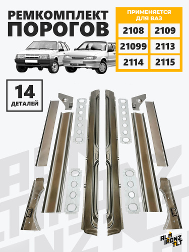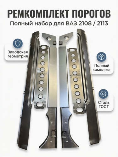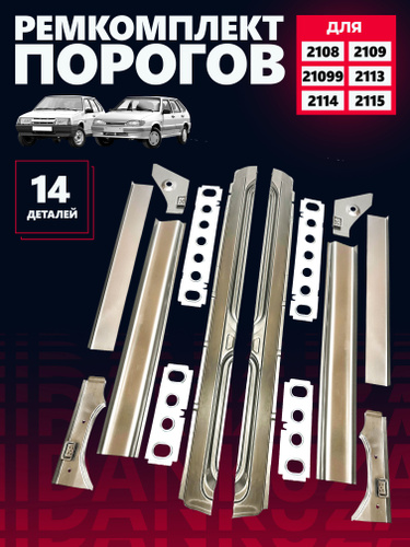 Ремкомплект порогов 2109, 2114 (пороги наружные + внутренние + усилители + соединители + поддомкратники)