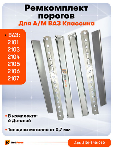 Ремкомплект порогов совместимость с а/м 2101, 2102, 2103, 2104, 2105, 2106, 2107; пороги наружные+усилители+соединители; ремкомплект порога классика