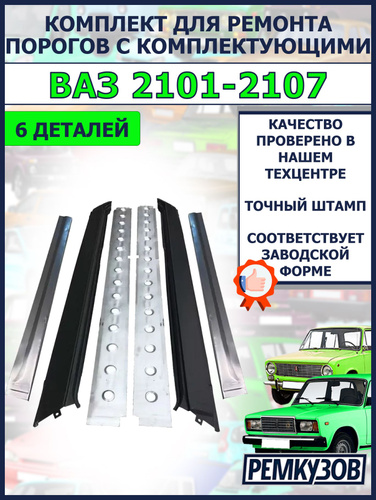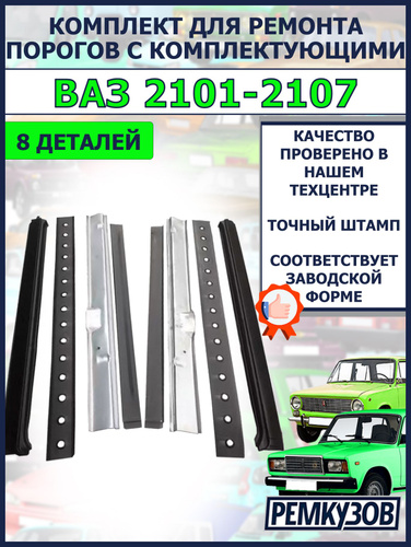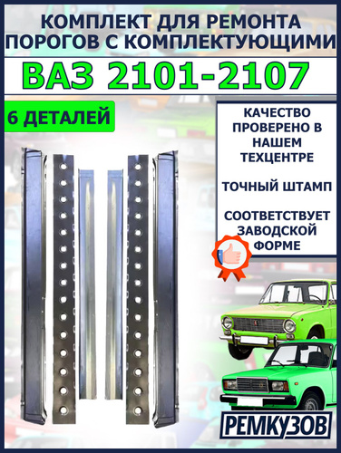 Ремкомплект порогов совместимы с а/м ваз 2101 2102 2103 2104 2105 2106 2107; пороги наружные+усилители+соединители; ремкомплект порога классика