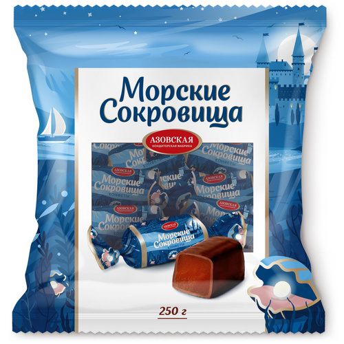 Конфеты помадные глазированные Азовская кондитерская фабрика "Морские Сокровища" со вкусом Ванильного Пломбира и Рома, безалкогольные, 250г.