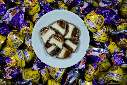 Конфеты шоколадные "Маршмеллоу" "Аленка" 500гр со вкусом вареной сгущенки производство "Воронежская кондитерская фабрика".