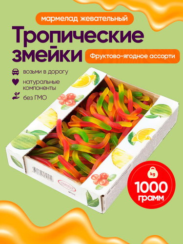 Мармелад Тропические змейки, 1 кг Азовская кондитерская фабрика