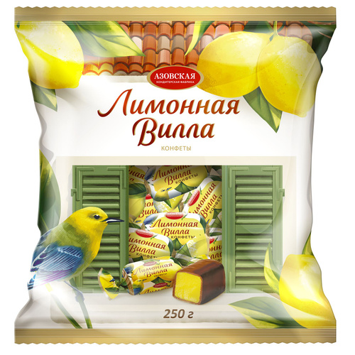 Конфеты помадные глазированные Азовская кондитерская фабрика "Лимонная Вилла" со вкусом Лимона, 250г.