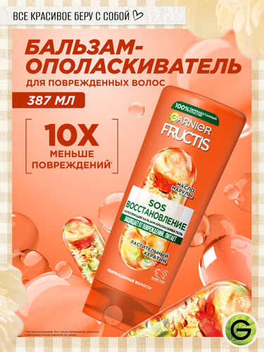 GARNIER Бальзам-ополаскиватель для секущихся и очень поврежденных волос Fructis SOS Восстановление, 387 мл