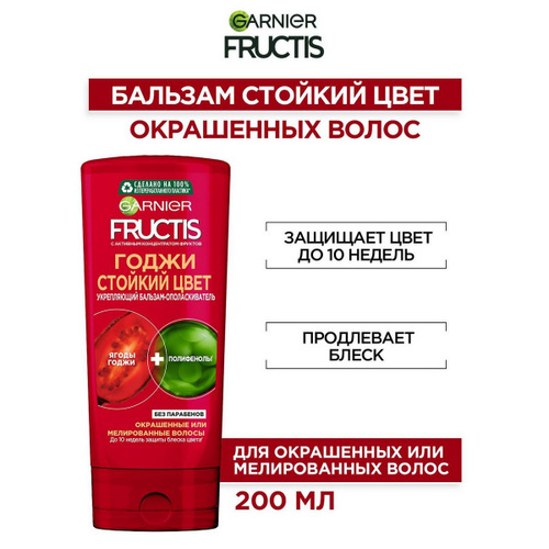 GARNIER Бальзам-ополаскиватель Fructis Годжи Стойкий цвет Укрепляющий для окрашенных и мелированных волос, 200 мл - 1 шт