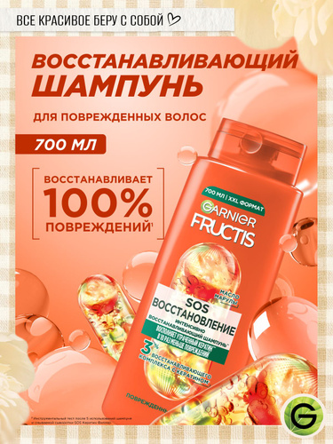 GARNIER Шампунь для секущихся и очень поврежденных волос Fructis SOS Восстановление, 250 мл