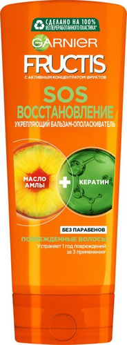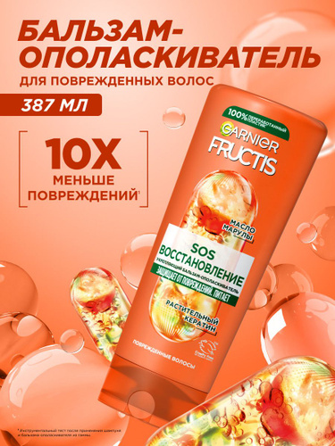 Garnier Fructis Укрепляющий бальзам для волос "Фруктис, SOS Восстановление" для поврежденных волос, с маслом амлы и кератином, 387 мл