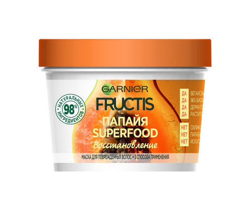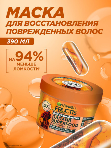 GARNIER Маска для поврежденных волос Fructis Superfood Папайя восстанавливающая, 390 мл