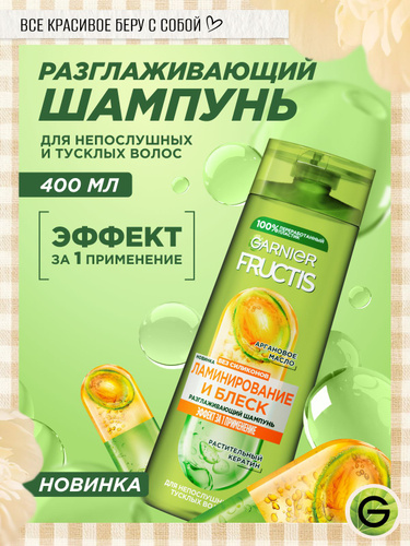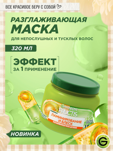 Garnier Fructis Разглаживающая маска для волос Фруктис Ламинирование и Блеск, с аргановым маслом, 320 мл
