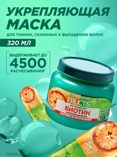 Garnier Fructis Маска против выпадения волос Фруктис "Рост во всю силу. БИОТИН", укрепляющая, для слабых волос, 320 мл