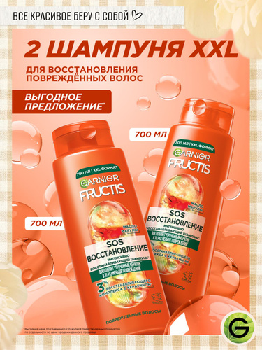 Garnier Fructis Укрепляющий шампунь для волос Фруктис SOS Восстановление в наборе 2 шт., для поврежденных волос, 700 мл + 700 мл