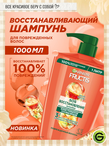 Garnier Шампунь для волос Фруктис "SOS Восстановление" для поврежденных волос, 1000мл