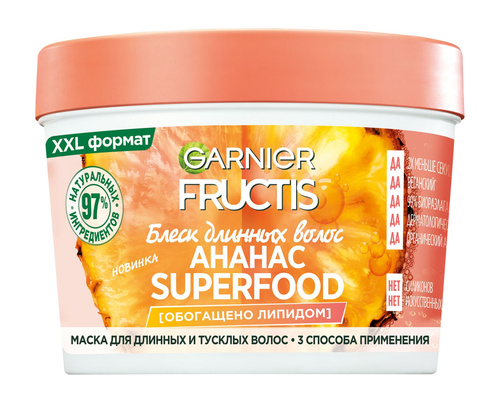 GARNIER Маска для длинных и тусклых волос "Ананас Блеск длинных волос" Fructis Superfood, 390 мл
