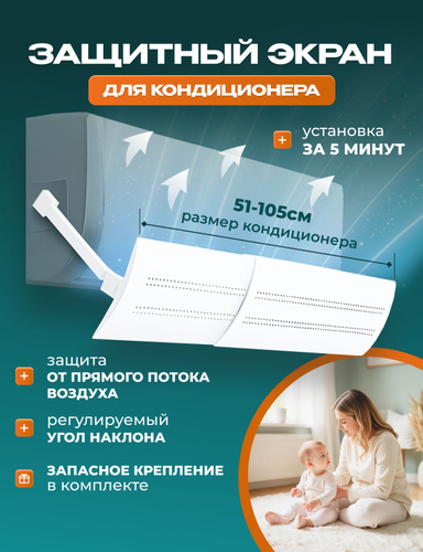Защитный экран для кондиционера 60 - 95 см регулируемый универсальный ,отражатель ,рассеивающий экран