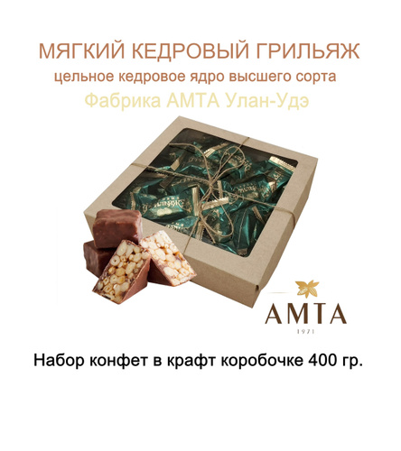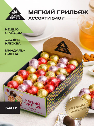 Мягкий грильяж Сибирские конфеты 540 гр ассорти кешью-мед, миндаль-вишня, арахис-клюква