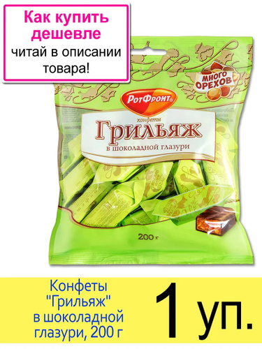 Конфеты шоколадные РотФронт "Грильяж" в шоколаде, 200 г, 1 уп.