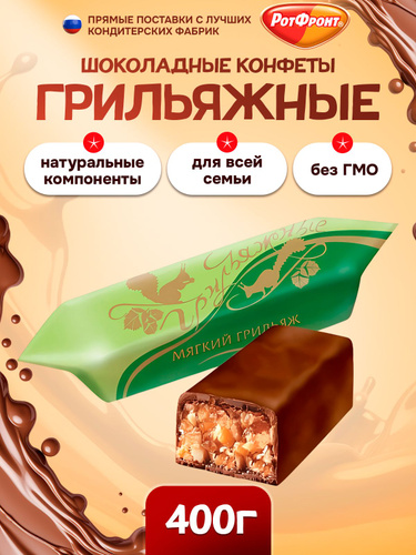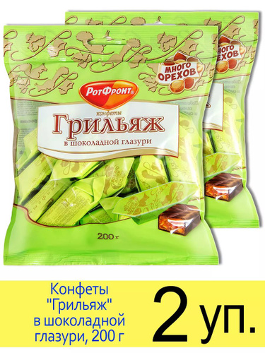 Конфеты шоколадные РотФронт "Грильяж" в шоколаде, 200 г, 2 уп.