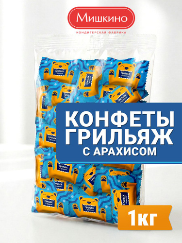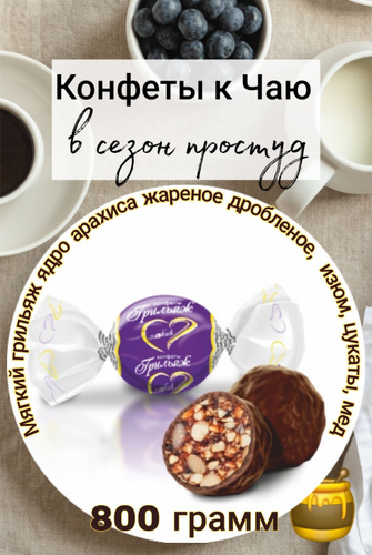 Конфеты "Мягкий грильяж" ядро арахиса жареное дробленое, изюм, цукаты, мед в шоколадной глазури, 0,8 кг