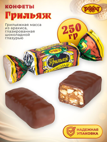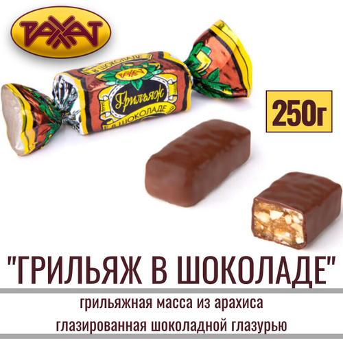 Конфеты "ГРИЛЬЯЖ В ШОКОЛАДЕ" грильяжные из арахиса, глазированные шоколадной глазурью 250 гр / РАХАТ