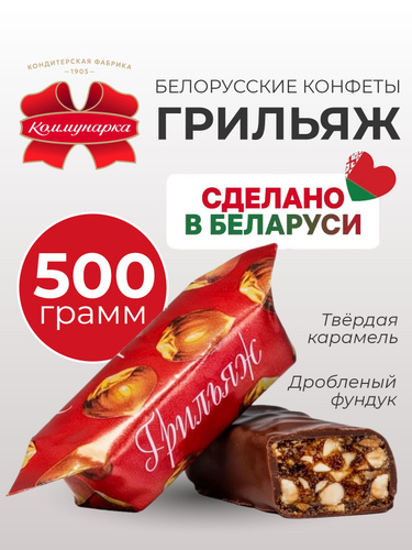 Белорусские конфеты шоколадные Грильяж в шоколаде с фундуком, Коммунарка, 0,5 кг