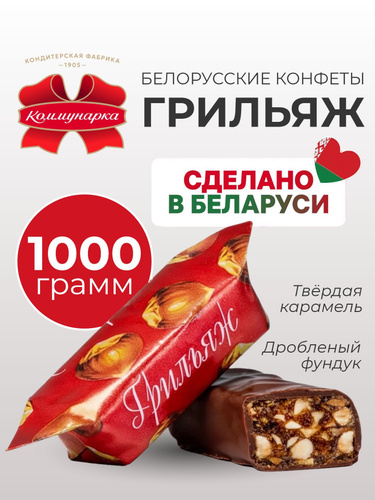 Белорусские конфеты шоколадные Грильяж в шоколаде с фундуком, Коммунарка, 1 кг