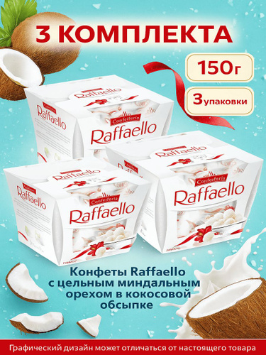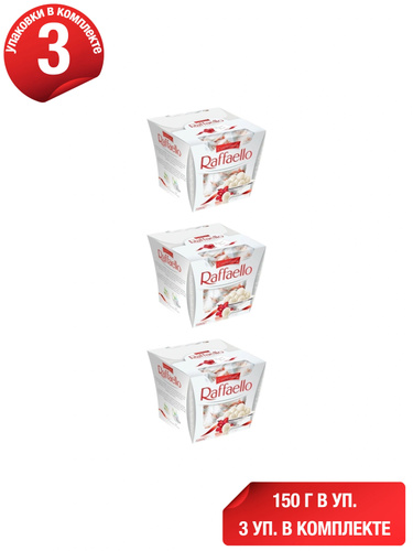 Конфеты Raffaello с цельным миндальным орехом в кокосовой обсыпке 150 г, набор: 3 штуки