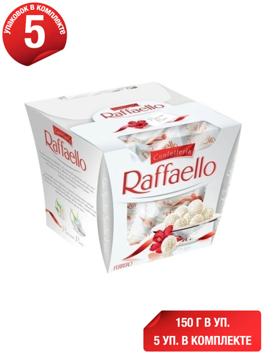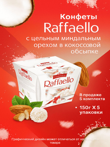 Конфеты Raffaello с цельным миндальным орехом в кокосовой обсыпке 150 г, набор: 5 штук