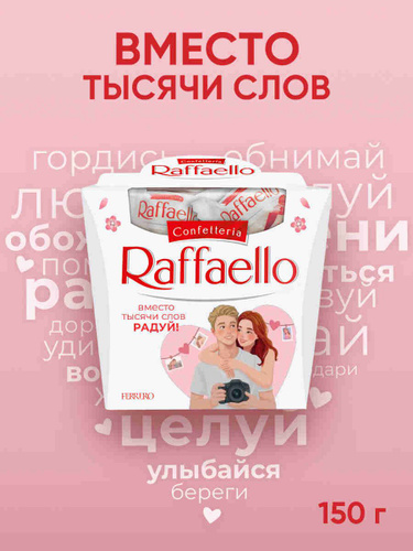 (1 x 150 г) / Raffaello, конфеты, кокосовые конфеты с нежным кремом и цельным миндальным орехом, в хрустящей вафельной оболочке, премиальный сладкий подарок