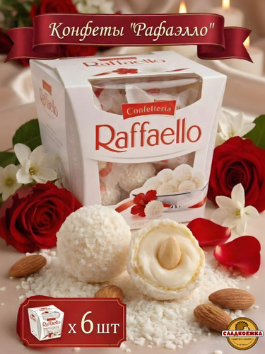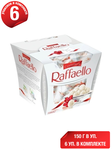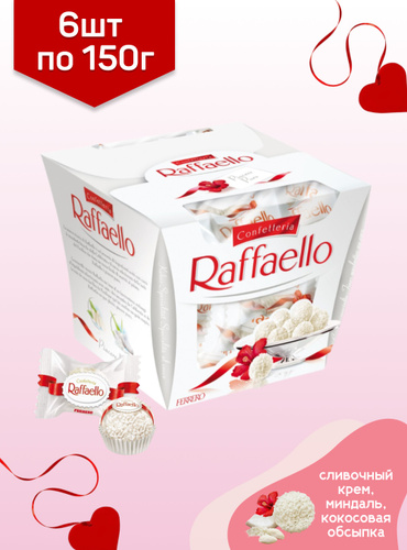 Конфеты Raffaello с цельным миндальным орехом в кокосовой обсыпке 150 г, набор: 6 штук