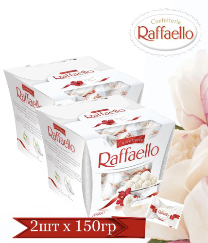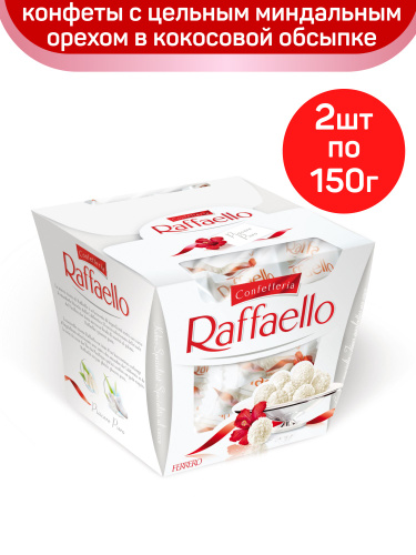 Конфеты Raffaello с цельным миндальным орехом в кокосовой обсыпке 150 г, набор: 2 штуки