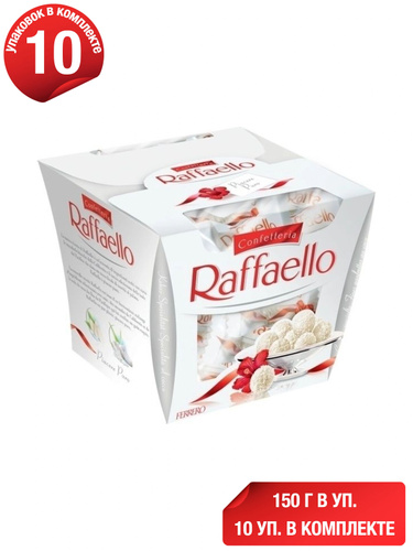 Конфеты Raffaello с цельным миндальным орехом в кокосовой обсыпке 150 г, набор: 10 штук