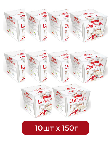 Набор конфет Raffaello с цельным миндальным орехом в кокосовой обсыпке, 150г х 10шт.