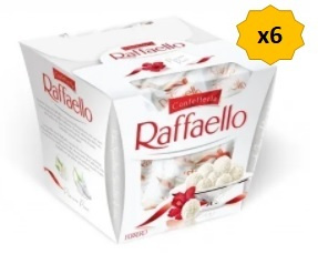 Набор подарочных конфет Raffaello с цельным миндальным орехом, в кокосовой обсыпке, 6шт по 150г.