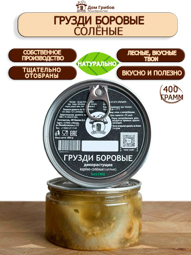 Грибы грузди соленые целые / 2х400 мл / лесные , Дом Грибов