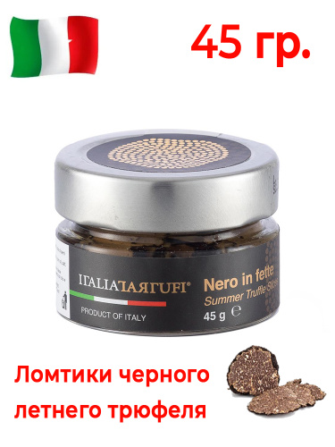Трюфель натуральный Italia Tartufi черный летний, нарезаный ломтиками (слайсы). В рассоле 45 гр. Продукт из Италии