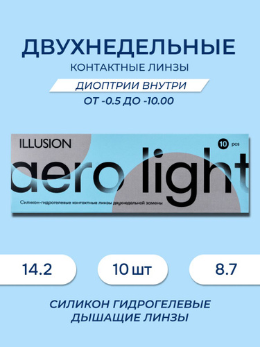 Линзы контактные мягкие длительного ношения, стерильные ILLUSION ("ИЛЛЮЖН") AERO LIGHT / АЭРО ЛАЙТ -0.75 (10шт)