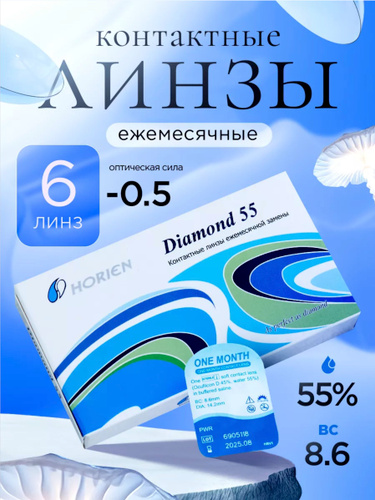 Horien Контактные линзы с диоптриями, -0.50, 8.6, 1 месяц