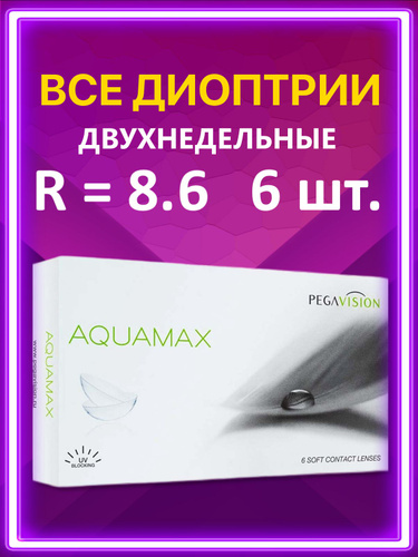 Контактные линзы для глаз двухнедельные Aquamax Pegavision 6 шт, 8.6, -0.75