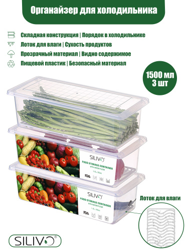 Органайзер для холодильника "контейнер для зелени", 1000 мл, 1 шт