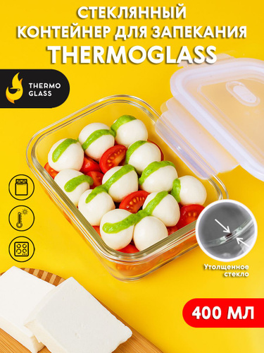 THERMOGLASS Контейнер пищевой "Контейнер пищевой стеклянны, для запекания.", 400 мл, 1 шт