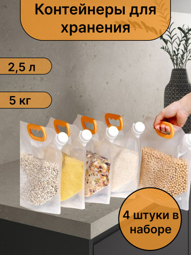 Пакеты-контейнеры для круп с крышкой среднего размера, набор из 3 шт