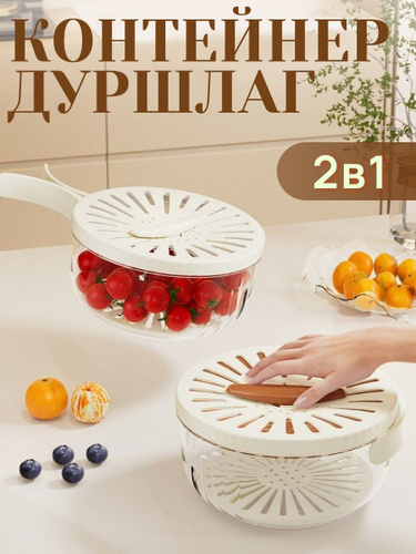 Wonderful Life. Контейнер-дуршлаг с ручкой для хранения овощей, фруктов, ягод и зелени 2в1