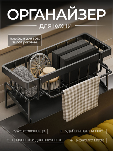 Подставка для столовых приборов, ножей, ложек / Органайзер для кухни для губки и щетки / Сушилка для посуды настольная.