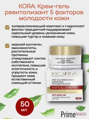 КОРА: Крем-гель ревитализант 5 факторов молодости кожи, 50 мл